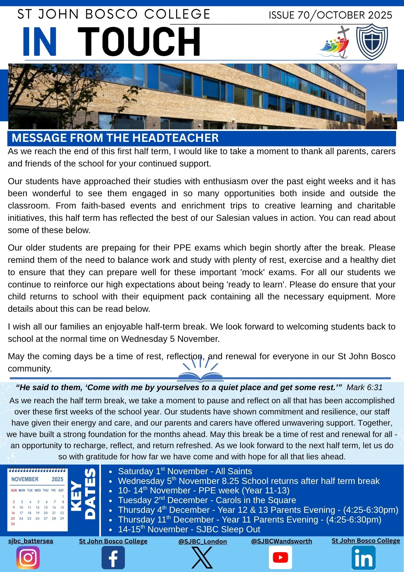 Keep up to date with key information from the school by reading our regular ‘In Touch’ newsletter to parents and carers.