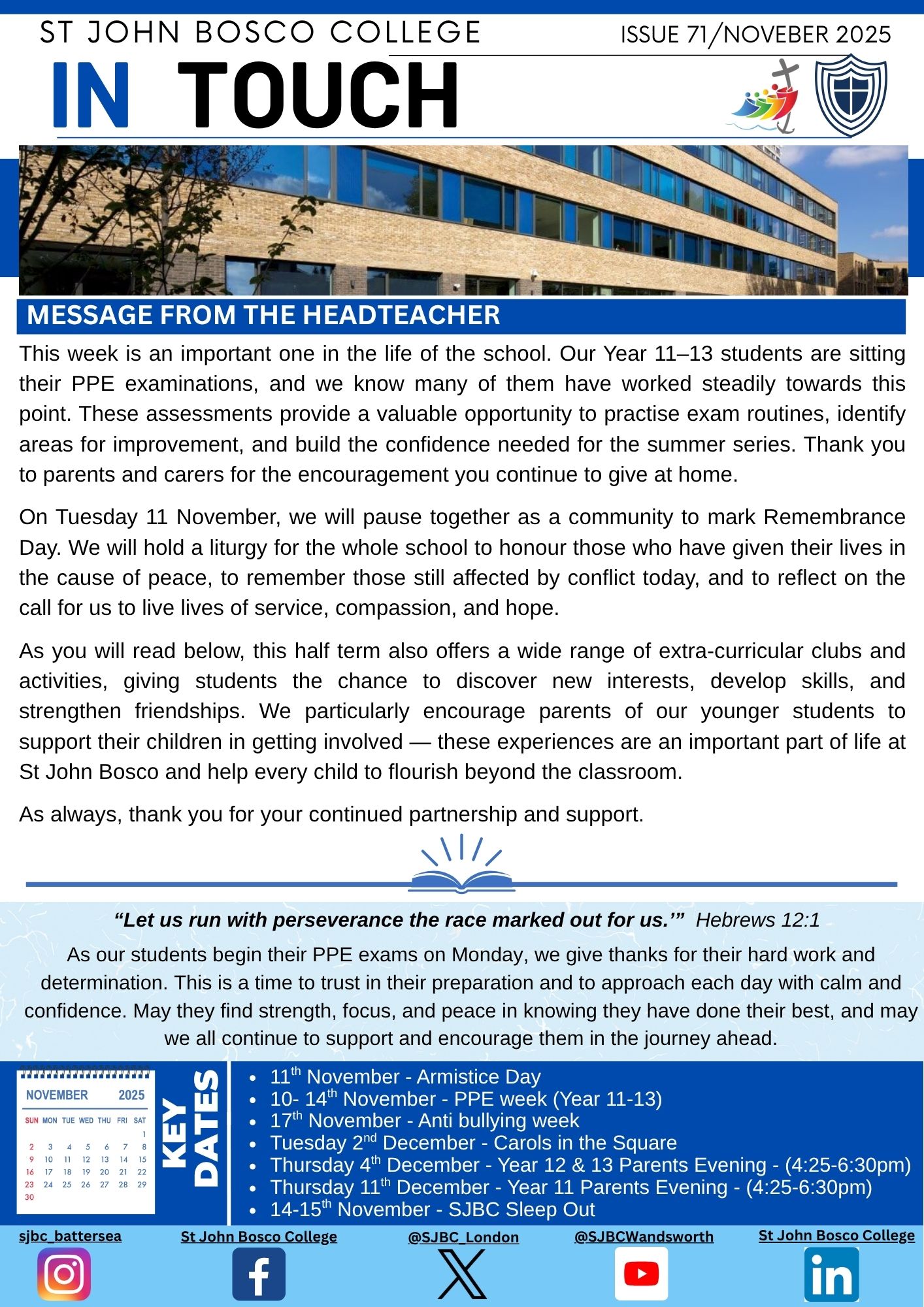 Keep up to date with key information from the school by reading our regular ‘In Touch’ newsletter to parents and carers.
